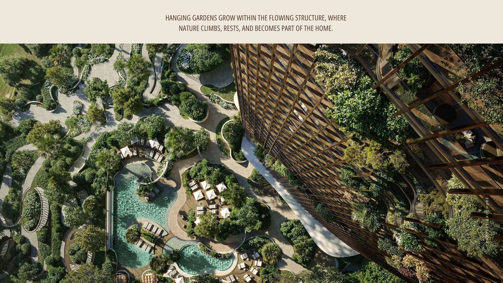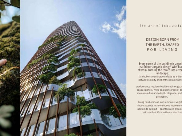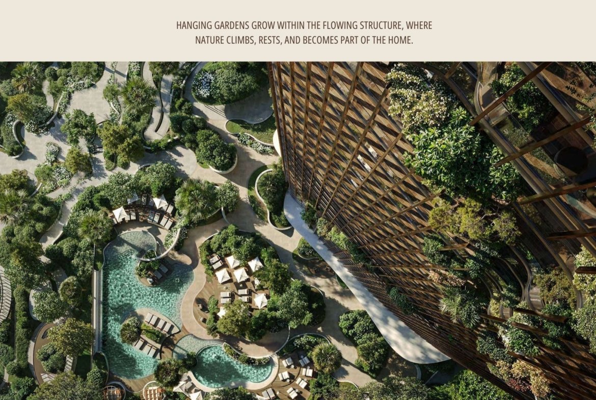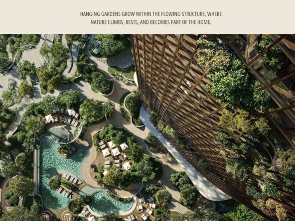 Les lignes architecturales fluides, les balcons sculptés façon canyon et les terrasses ouvertes permettent à la lumière naturelle de circuler, créant des espaces chaleureux, apaisants et connectés à leur environnement.